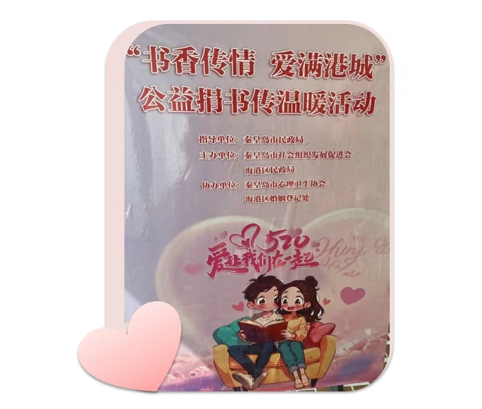 在充满爱意的“520”这一天,由秦皇岛市民政局指导,秦皇岛市社会组织发展促进会、海港区民政局主办,海港区婚姻登记处、秦皇岛市心理卫生协会协办的“书香传情 爱暖港城”——婚姻登记新政策解读与公益捐书行动在海港区婚姻登记处温馨启幕。众多新人与市民共同参与,现场爱意与书香交织。