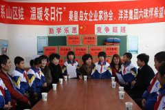 2013年12月9日,洋洋集团携手市女企业家协会开展了“情系山区娃 温暖冬日行”活动。洋洋集团联合市女企业家及洋洋集团商户向六珠坪洋洋希望小学的孩子们捐赠了150多套棉服,给孩