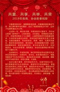 共襄、共享、共举、共荣 2019年各商、协会新春祝辞 万象更新辞旧岁,翰墨飘香迎新春。伴随着新春的喜庆气息,我们满怀着丰收的喜悦,送走了硕果累累的2018年,迎来了充满希望的