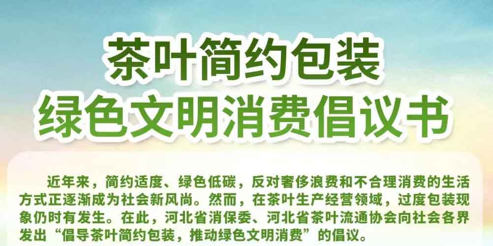 近年来,简约适度、绿色低碳,反对奢侈浪费和不合理消费的生活方式正逐渐成为社会新风尚。然而,在茶叶生产经营领域,过度包装现象仍时有发生。在此,河北省消保委、河北省茶叶流通协会向社会各界发出“倡导茶叶简约包装,推动绿色文明消费”的倡议。