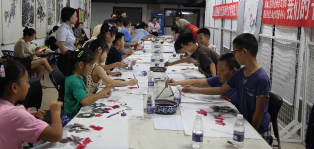 为大力弘扬中国优秀传统历史文化,2023年8月18日,服务里社区携手秦皇岛市古玩收藏商会、新洋洋花卉联合举办的洋洋花卉儿童艺术节——“我是艺术小达人”活动在古玩精品文化展区顺利开展,秦皇岛市中小学生及其家长百余人参加活动,秦皇岛市古玩收藏商会书画艺术委员会、古泉沙龙委员会的老师为孩子们献上了一堂丰富多彩的文化艺术课。