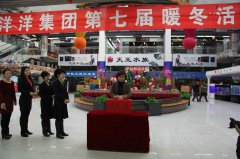 12月10日,2014年第一场瑞雪过后,气温下降,人们正春意盎然领略着初冬的威严。此时洋洋集团新洋洋花卉一楼大厅中央花团锦簇,“洋洋集团第七届暖冬活动”的大红横幅下,人们排