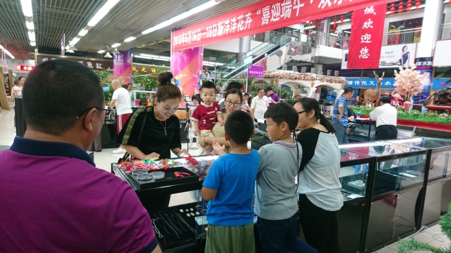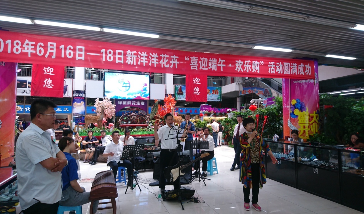 伴随着秦皇岛“海之声”乐队的一首<好日子>,新花卉“喜迎端午-欢乐购” 活动正式拉开序幕。本次活动由“秦皇岛市洋洋花卉有限公司、秦皇岛市洋洋绿色植物园有限公司、秦皇岛古玩收藏商会、秦皇岛市茶文化协会共同联合举办。活动当天人潮涌动,有粽子,有美食,有茶,有饰品,有珠宝等等等等,活动现场十分的热闹。展示区有孔雀及梅花鹿标本,栩栩如生,美轮美奂。感谢2—A—21聚宝阁、2—A—28鑫福轩、2—A—38、 2—A—45大翡翠福、2—A—55指间文玩、2—C—28辰宝轩、3—A—3中国魏氏(茶)、3—A—4茗悦茶庄(茶)、3—A—2白彬鹿业积极参与本次欢乐购活动!商户们都对本次活动达到的销售额十分的满意,并且加了顾客不少微信好友,对自己的店铺起到了宣传作用。本次《端午欢乐购》活动取得了圆满的成功!感谢集团董事局主席、文副主席、臧副主席、对新花卉本次活动的大力支持,新花卉充满动力!奋勇向前!以后会多多举办活动,为商户多做宣传,我们是一个团队!我们是新洋洋花卉!我们与商户朋友们携手共同打造我们新洋洋花卉美好的明天!!