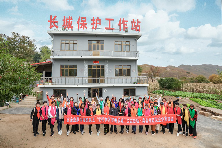 秦皇岛市女企业家协会会长刘洋代表全体姐妹向张鹤珊老师奉献了女企业家们的爱心捐赠,希望张老师能够带着所有女企业家的爱和期望更好的守护好古迹、保护好长城,为未来保存下更厚重的历史文化。同时还在此建立了“秦皇岛市女企业家爱心工作站”,并成立了女企业家保护长城自愿者工作组,协会将定期带领会员到长城沿线开展捡拾垃圾、宣传长城文化等志愿服务,希望通过爱心工作站能够吸引更多企业参加到“爱我中华、护我长城”的公益活动中,让大家能够关注长城,更深爱长城文化,传承历史的厚重,更希望女企业家协会289名会员能够积极带领企业更多的参加保护长城公益活动,为社会承担责任,为保护历史文化献上爱心。