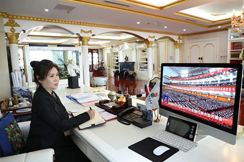 巾帼心向党,喜迎二十大。集团董事局主席刘洋全程收看了二十大开幕直播盛况,她表示:党的二十大报告是我们党团结带领全国各族人民坚定不移走中国特色社会主义道路、在新的历史起点上继续发展中国特色社会主义的政治宣言和行动纲领,鼓舞人心,催人奋进。我们要把思想和行动统一到党的二十大精神上来,把学习宣传贯彻党的二十大精神,作为当前和今后一段时期的头等大事抓紧抓好,用二十大精神指导集团今后各项工作的开展,为打造百年品牌企业,实现美好愿景目标坚定信心、同心同德、埋头苦干、奋勇前进,为全面建设社会主义现代化国家,全面推进中华民族伟大复兴而团结奋斗!