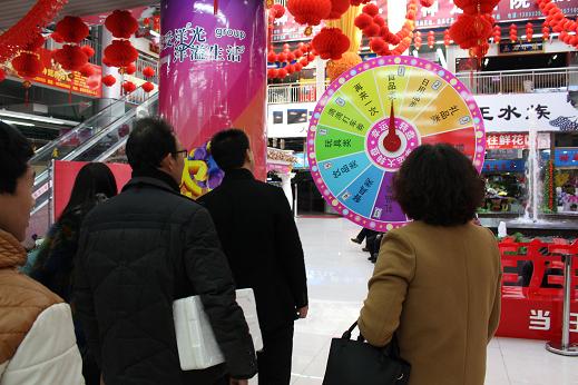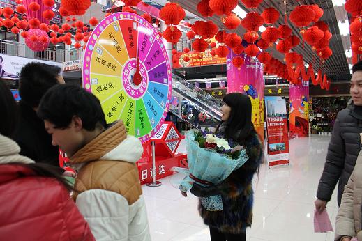 为增强商场节日氛围,促进年前商场购买力,加大企业宣传力度,洋洋集团与新洋洋花卉、洋洋购物网在2015130日—25日期间共同举办了“喜迎新春有奖销售活动”。凡在新洋洋花卉购物一次性消费满50元(含50元)以上的顾客(以收据为准),均可参加现场幸运大转盘活动。
