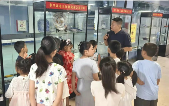 2025年8月6日,秦皇岛洋洋教育集团携手服务里社区开展的"小虎子探秘古艺术品易货交流"在秦皇岛新洋洋花卉古玩精品文化展区开启。三十余组亲子家庭穿梭于墨香瓷韵间,在专业老师带领下,开启了一场跨越古今的文化艺术探索之旅。