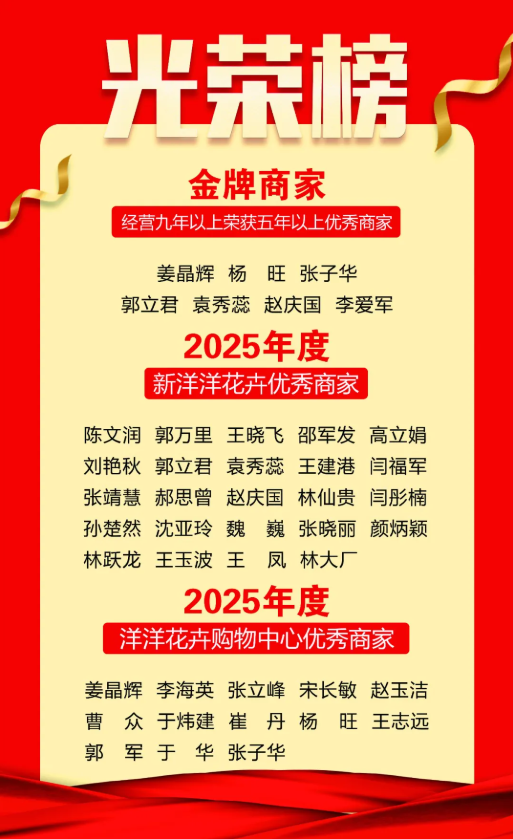 回望2025年,是商场与广大商家同心同行、双向奔赴的一年。商场始终以服务为根基,持续优化经营环境与服务体系,联动策划线上线下推广、文化科普宣讲、青少年互动体验等多元品牌活动,为商家搭建起拓客增效的优质平台。而广大商家亦坚守诚信经营的本心,以积极的参与态度、坚定的责任担当,为每一场活动注入鲜活动能,在引流拓客、激活消费活力、提升品牌影响力上融合发力,与商场携手共同筑牢了市场发展根基,让“洋洋”品牌价值在并肩前行中稳步攀升。