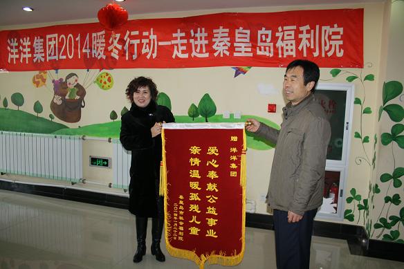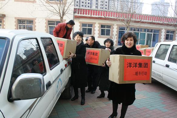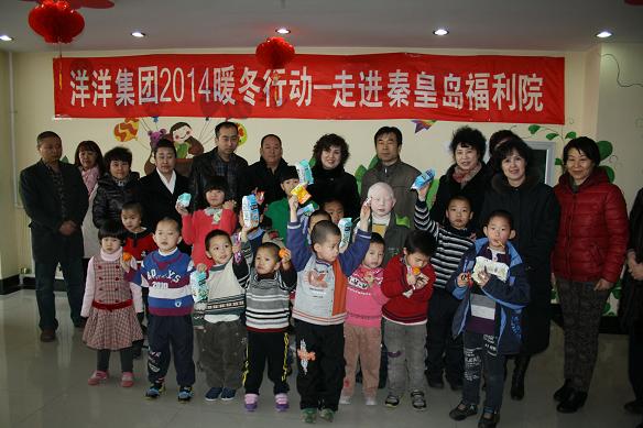 本次活动是洋洋集团由2009年就开始主办的“温暖寒冬、奉献爱心”捐赠活动,如今已经是第六届了,此项活动深受洋洋集团广大商户、以及洋洋集团全体员工的拥护,他们积极响应,踊跃捐款捐物达万余元,采购了羽绒服、棉衣、奶粉、饼干、水果、糖果、玩具、内衣等物品。市福利院张院长及全体工作人员对暖冬行动给予了高度评价,对洋洋集团以及热心公益事业的好心人表示了衷心感谢和热烈欢迎!刘总一行在张院长的陪同下把糖果、玩具、饼干等物品亲手送到孩子手上,抱起残疾儿童刘总目光慈爱,表情凝重,详细询问孩子的健康和生活情况,对福利院的员工称赞道:你们真的很伟大,平凡的工作中付出特别伟大的爱,你们就是最可爱的人!并对张院长承诺在福利院有困难需要帮助的时候一定会伸出援手。