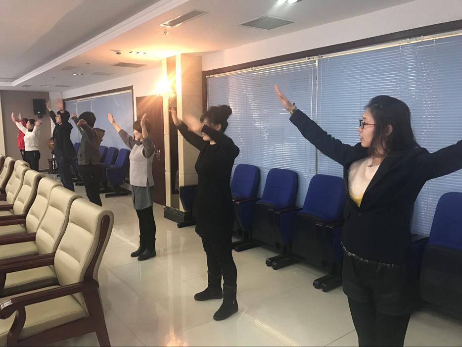 2017年1月6日,集团综合部邀请专业健身教练组织行政、马术俱乐部、网络公司相关办公室人员在四楼会议室进行舒展健身运动活动。